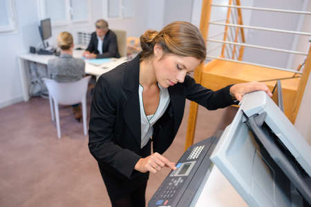 The female staff is copying the photocopier in the office.