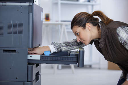 Woman setting up photocopier