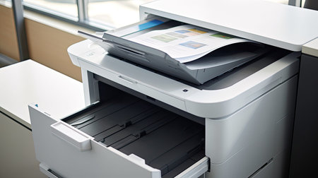 close up of multifunction printer, office copy machine