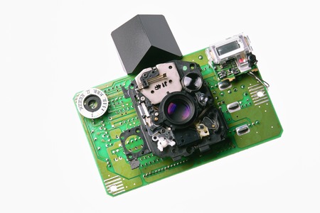 A picture of an electronic shutter, the component of an electronic reflex camera.