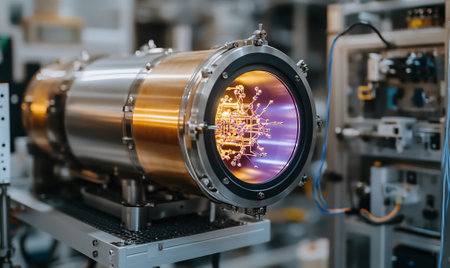 Close-up view of a detailed quantum computing core with vibrant design and advanced connections, emphasizing technological advancements.