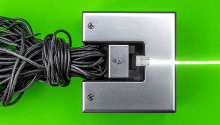 From a complex and tangled input of wires, a powerful and precise green laser beam emerges, symbolizing the transformation of chaos into focused energy and data.