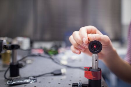 Equipment in a quantum optics lab (color toned image)