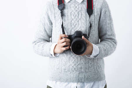 photographer with camera hobby technology studio lifestyle creative light background