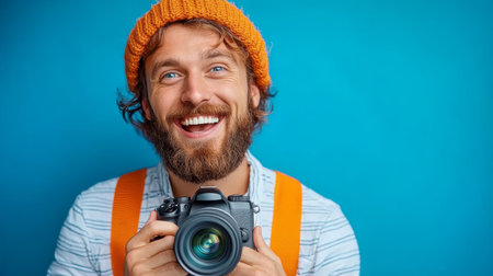 Smiling Photographer with Camera: Capturing Moments with Joy