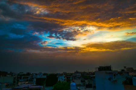 Silhouette of India Gate against amazingly beautiful sunset and sky