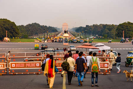 Delhi/ India - October 15,2019. Rajpath is a ceremonial boulevard in New Delhi, India, that runs from Rashtrapati Bhavan on Raisina Hill through Vijay Chowk and India Gate,