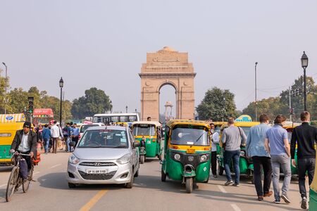 NEW DELHI, INDIA, MARCH, 2019: Delhi City street view from Rajpath 'King's Way' with India Gate in background.