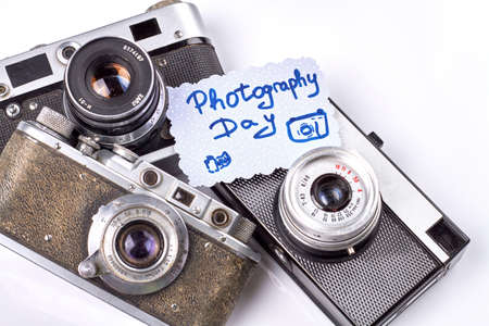 Old retro vintage camera photography copyspace. Obsolete nostalgia style.