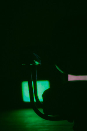 A vertical shot of an electrician's hand with a green lamp
