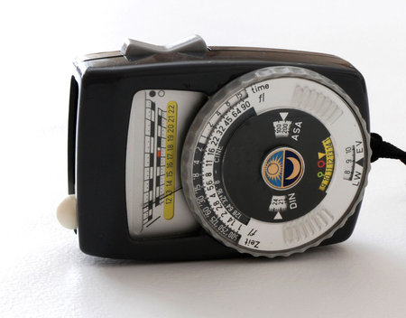 Hand holding light exposure meter, a photograph device for measuring illumination on white background