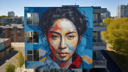 A building with a mural on the side of it. Generative AI image.