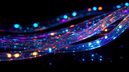 optical fibres dinamic flying from deep on technology background