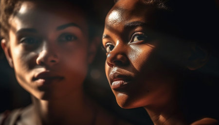 Smiling young adults bond in close up portrait of togetherness generated by artificial intelligence
