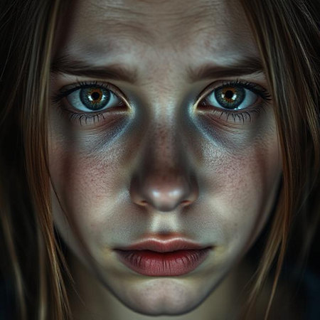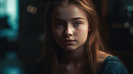 A young girl staring blankly, overwhelmed by feelings of depression and loneliness, symbolizing mental health issues and the need for help