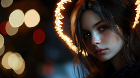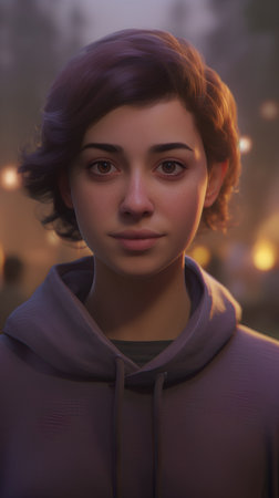 Portrait of a young woman with brown hair looking at camera generated by artificial intelligence