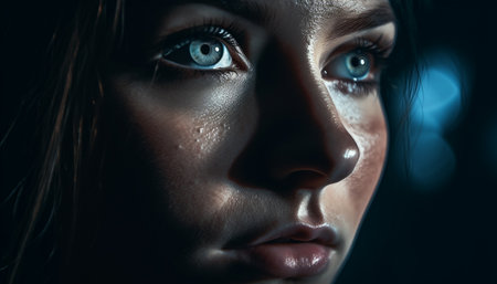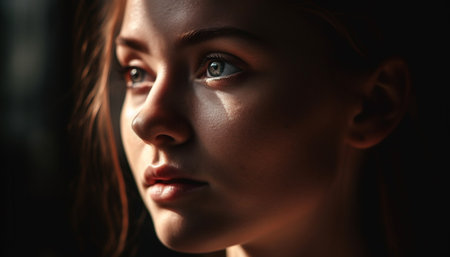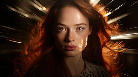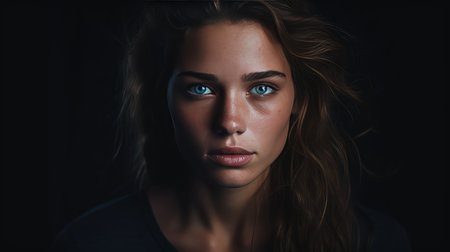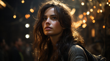 Beautiful woman with long hair staring confidently at the camera generated by artificial intelligence