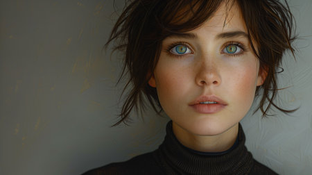 Close-Up Portrait of a Young Woman With Short Brown Hair and Green Eyes