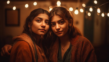 Beautiful women smiling with confidence, indoors portrait generated by artificial intelligence