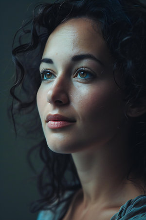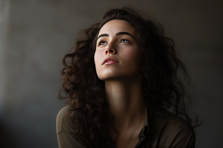 Portrait of a beautiful young woman with curly hair, close-up