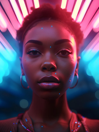 Fashion portrait of beautiful african american woman with neon lights