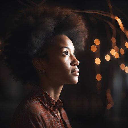 Beautiful african american woman with afro hairstyle looking away
