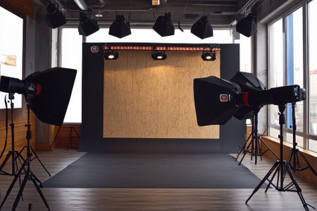 A close - up view of a modern photo studio, showcasing the professional equipment and setup. Generative AI