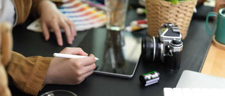 photographer man hand graphic tablet on desk