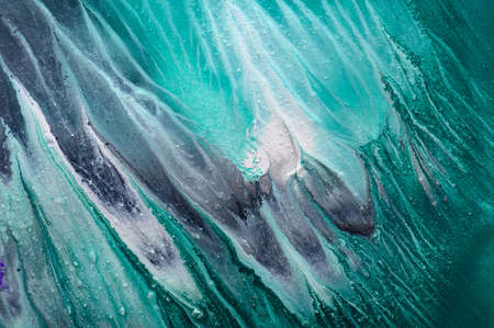 Marble blue and green abstract background in sea style. Liquid close up ink pattern.