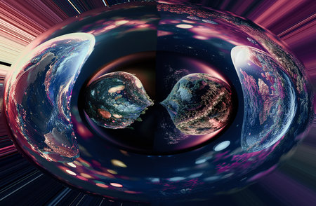 Illustration of cristal balls of worlds at night
