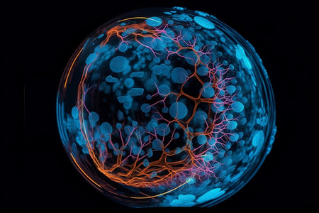 Generative AI : Virtual reality space with abstract multicolor psychedelic planet Closeup Soap bubble like an alien planet on black background