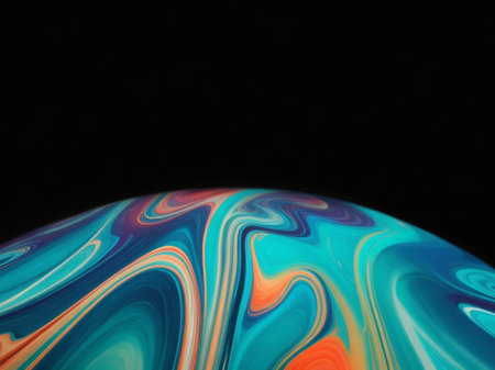 Close up picture of half soap bubble psychedelic color on black background look like colorful liquid planet in another galaxy