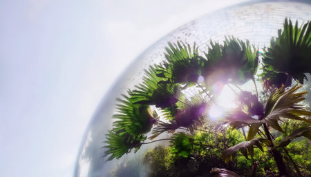 Bright canopies of tropical plants thrive within a transparent dome, capturing sunlight and showing the rich biodiversity of the firefly planet's ecosystem.