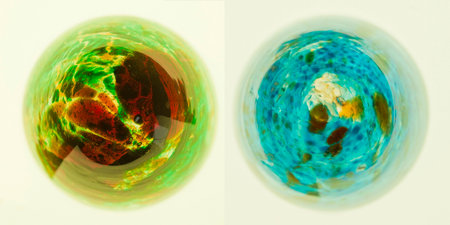 a glass sphere with colorful swirls