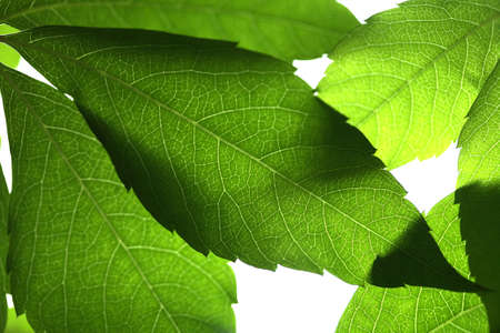 Closeup of a green leafes on a light background