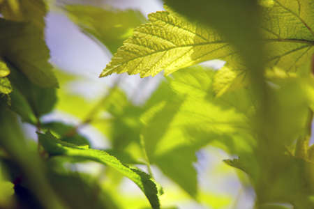Fresh green leaves, currant bushes.
