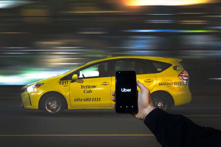 VANCOUVER, BC, CANADA - SEPT 1, 2019: British Columbia passed legistlation that allows ride hailing services to operate in the Metro Vancouver area and could cause a major disruption to the taxi industry.