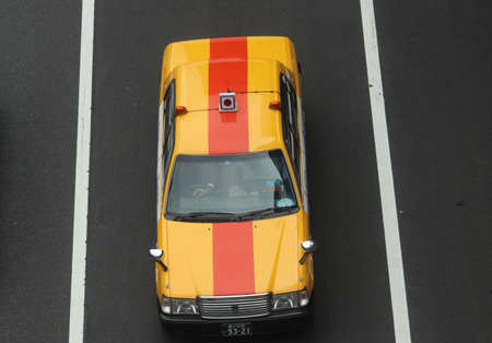 Athens Greece September 7, 2019 View of Greek yellow taxi driving through the streets of Athens in the morning