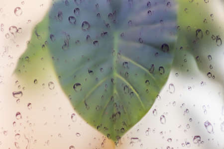 The Abstract of Water Drops Perched on Bird's Nest Fern Leaf in The Field