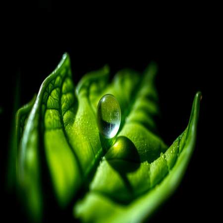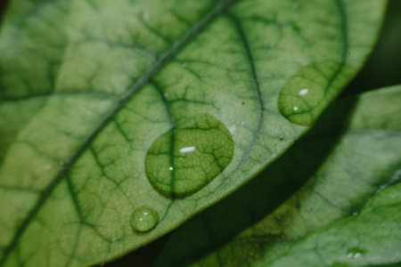 macro water drops on green plant leaf for natural background, wallpaper or backdrop use, Madagascar nature
