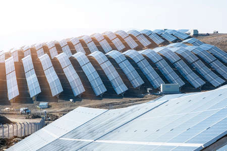 Power solar panels, alternative clean green energy concept. Environmental protection