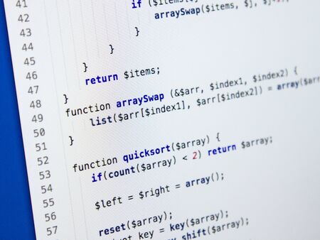 php web programming source code. Abstract code background. WWW software development. Software background. Website codes on computer monitor.