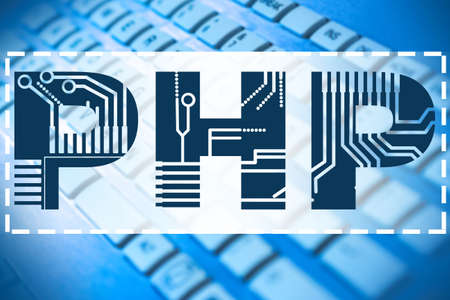 PHP programming language. Computer language. The concept of developing web applications. Large PHP letters imitate a printed circuit Board.
