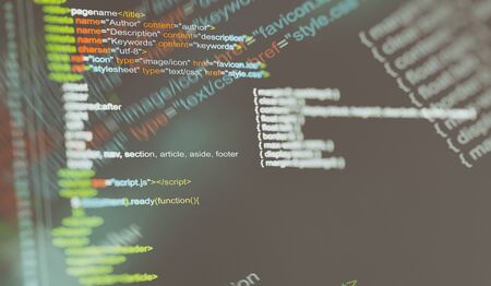 Programming code screen of software developer. Software Programming Work Time. Code text written and created