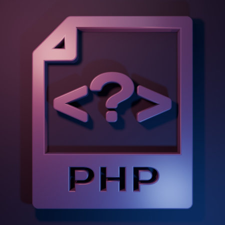 Purple PHP file document. Download php button icon isolated on purple-blue background. PHP file symbol. Minimalism concept. 3D render illustration.