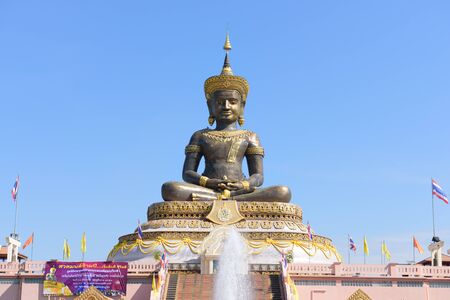 January 24 ,2022 A Buddha statue with signboard Nongnamphet meditation center (the royal temple ) at Nong bualamphu province ,Thailand