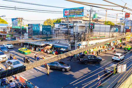 Bangkok Thailand January 27, 2020 City life streets cars people in Don Mueang Bangkok Thailand.