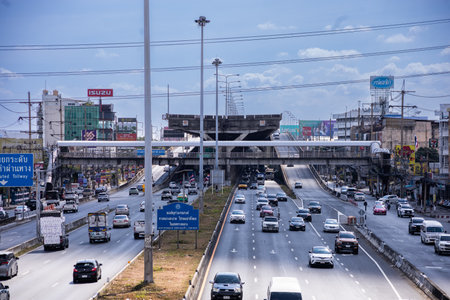 Pathum Thani, THAILAND - December 6, 2025: View of the end of tollway at rangsit Pathum Thani province