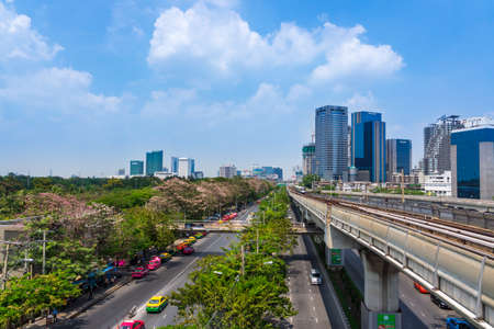 BANGKOK, THAILAND - Mar. 8, 2018 : Bangkok Mass Transit System or BTS skytrain is an elevated rapid transit system in Bangkok to solve the problem of road congestion.