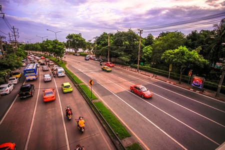 Traffic jam at Vibhavadi Rangsit Road. Bangkok traffic is usually busy during the rush hour Moments after work.